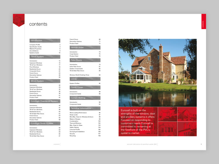 Eurocell Profiles approached me to design their 200+ page ‘Fabricators and Specifier Guide’ that architects and fabricators use when designing properties. The brochure had to be easy to navigate and make data easy to comprehend as well as bringing attention to key product benefits.