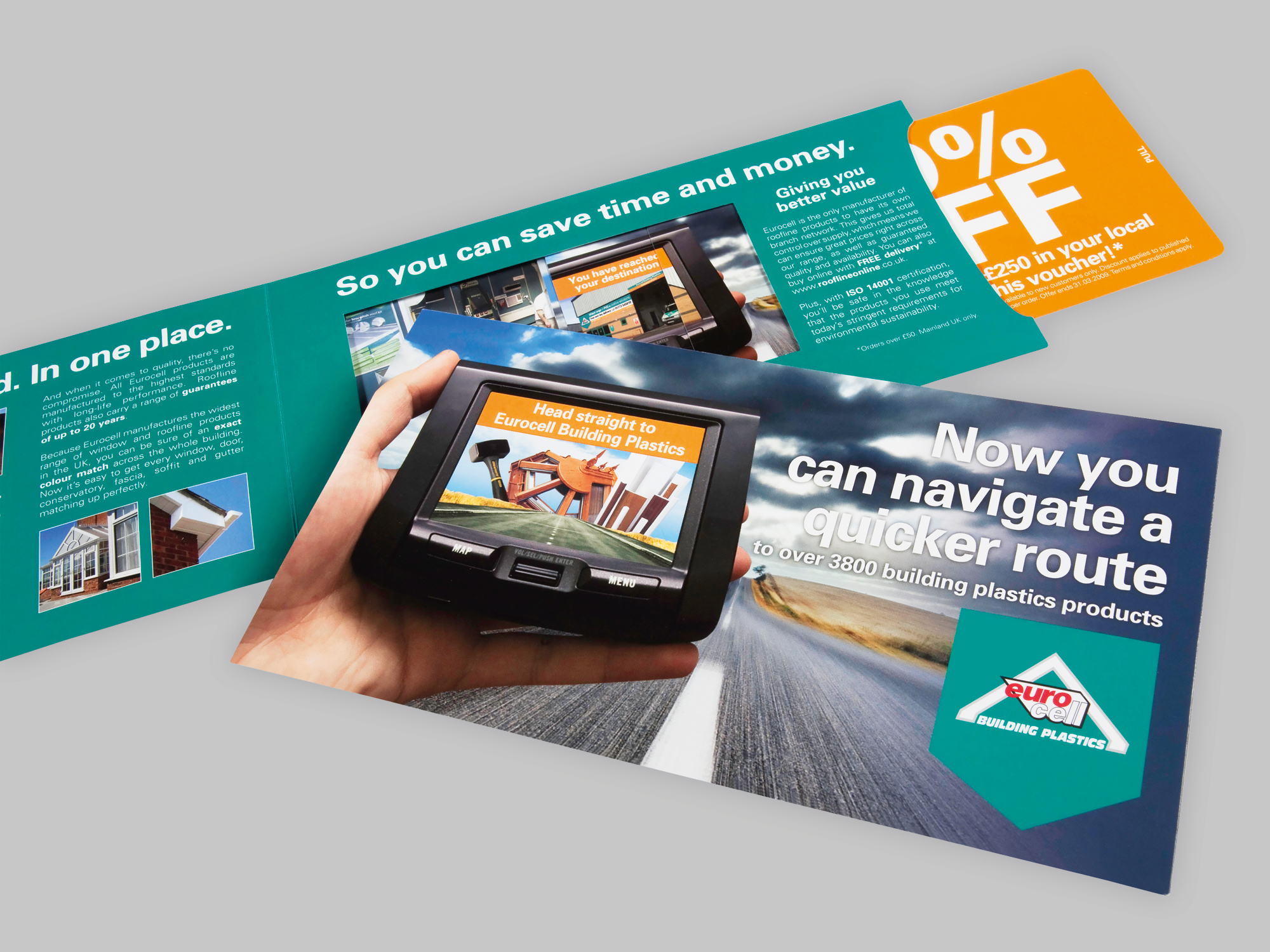 I came up with the campaign concept “Now you can navigate a quicker route to over 3800 building plastics products”. The campaign included a press advert, direct mail campaign and an online micro-site where you could find out more information as well as directions to your nearest Eurocell store.